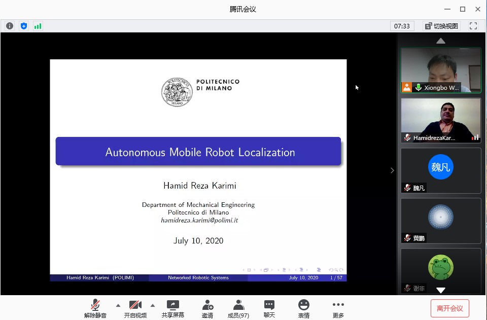 710日下午,意大利米兰理工大学 Hamid Reza Karimi 教授应邀为必赢官网师生分别作了题为“Autonomous Mobile Robot Localization”和“Scientific Research Dissemination: Ethics, Publication, Evaluation的在线学术报告。学院100余名师生参加了此次报告会。